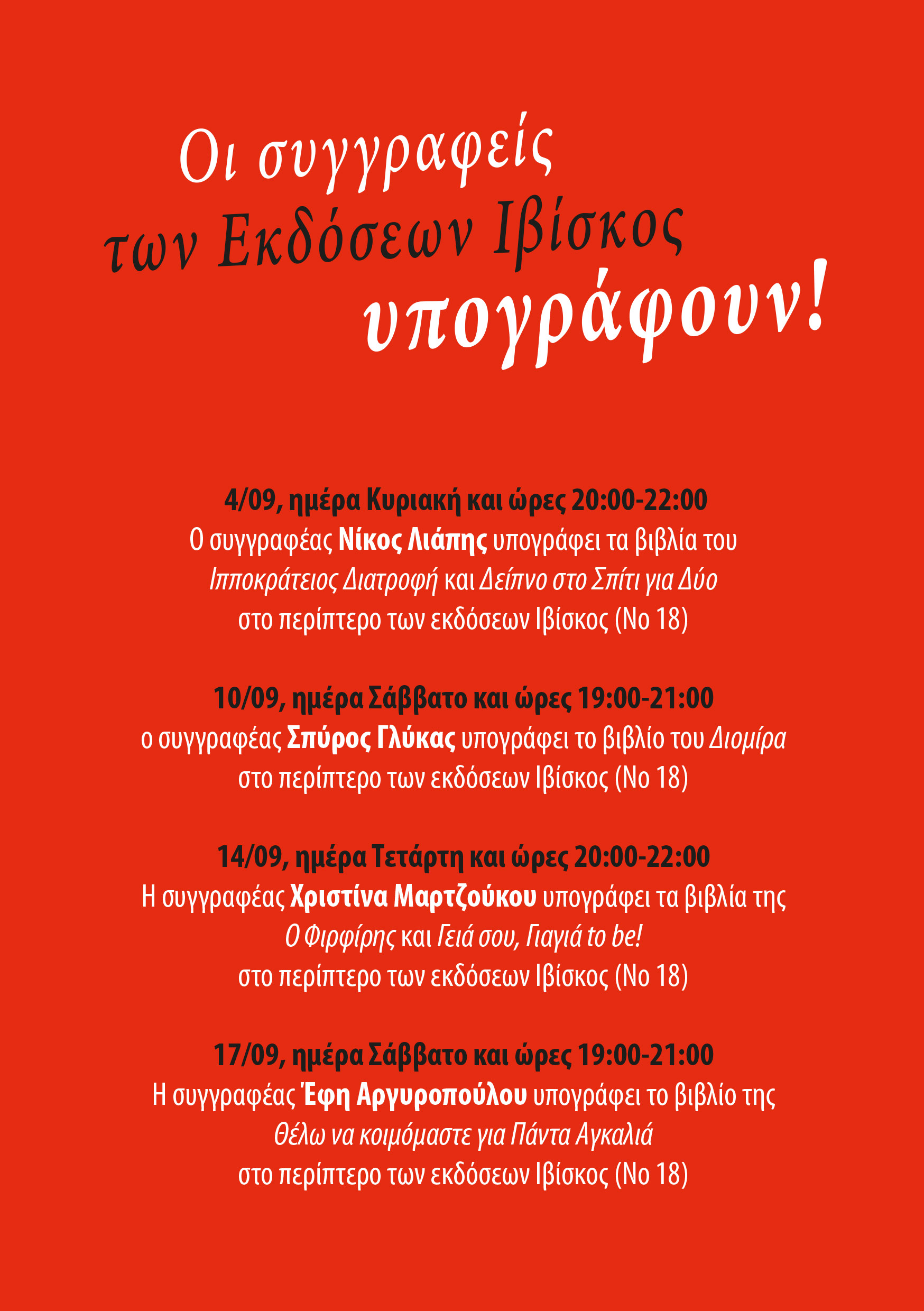 Έλληνες συγγραφείς θα είναι εκεί για να υπογράψουν με μοναδικές αφιερώσεις τα βιβλία τους.