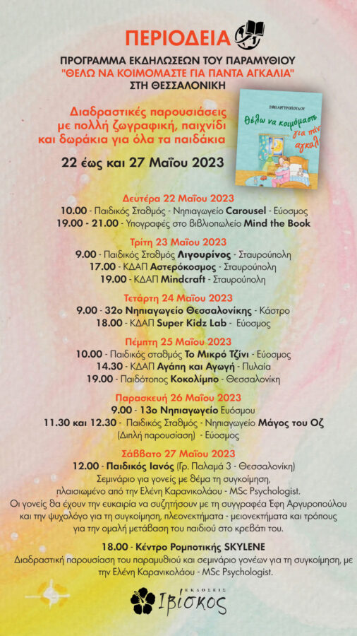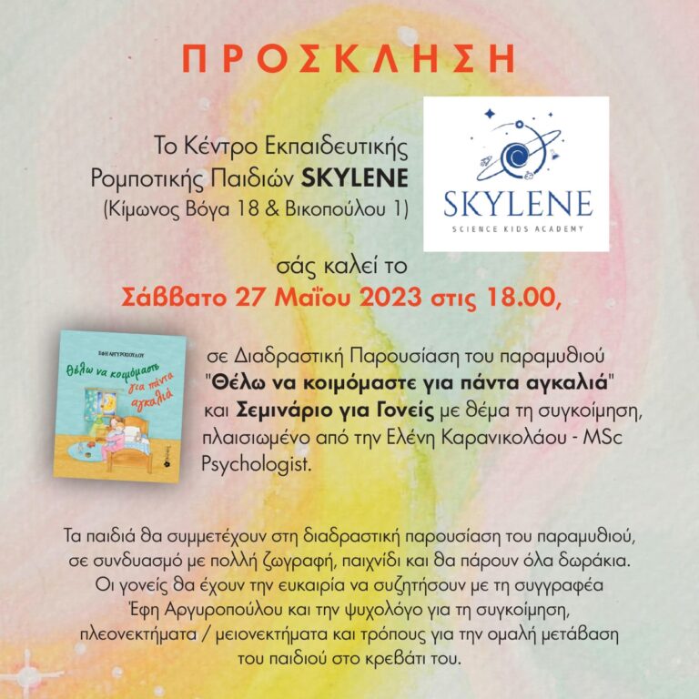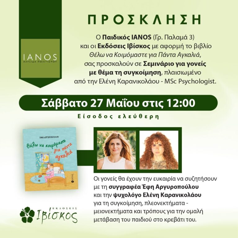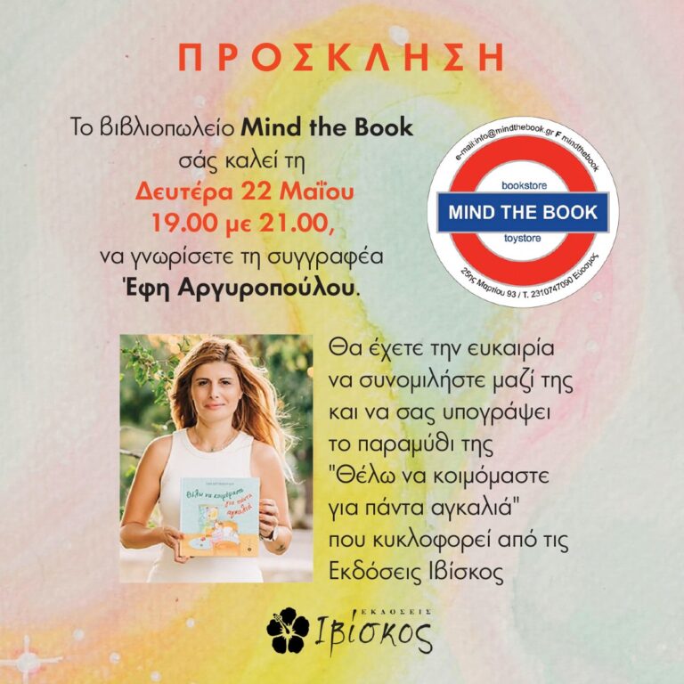 💡 Αν θέλεις να γνωρίσεις και ‘συ από κοντά τη συγγραφέα και να συζητήσεις θέματα γύρω από το παιδιά και τη σχέση με τους γονείς, σε περιμένουμε εκεί!